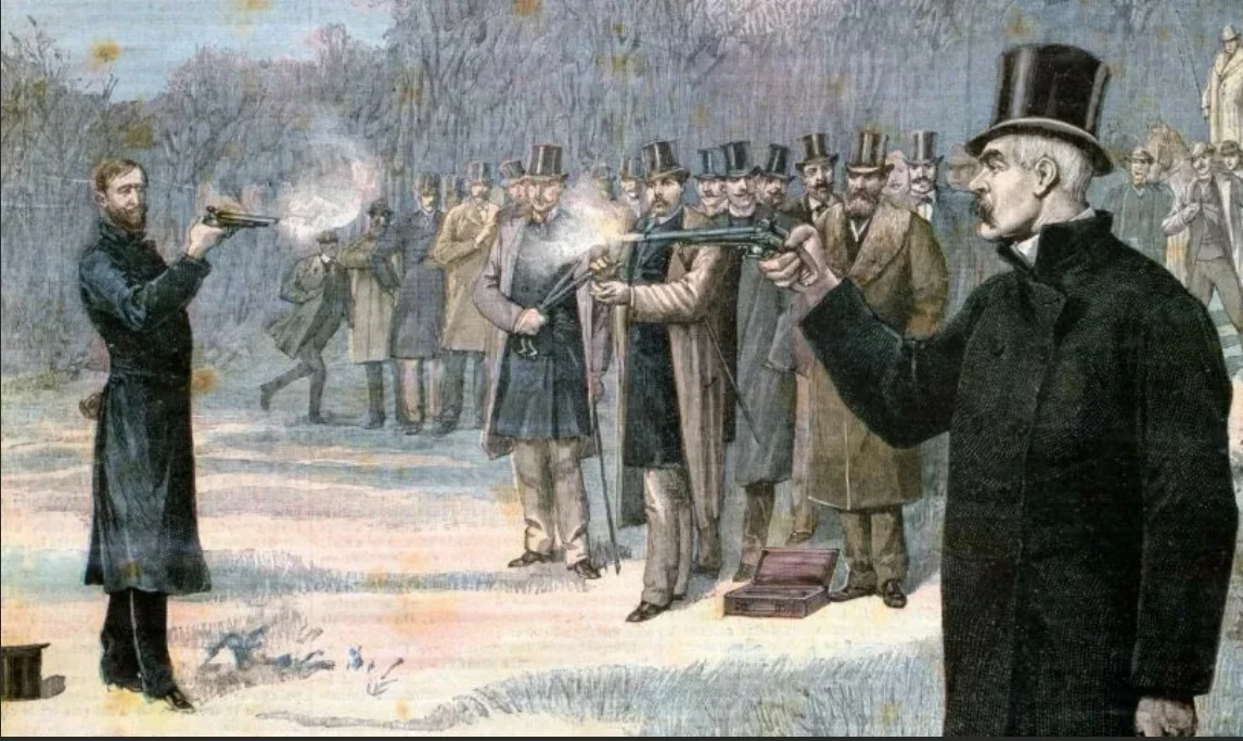 Постепенно, с развитием огнестрельного оружия, в России оно постепенно вытесняет холодное и становится любимым «инструментом» для решения подобных вопросов. Уже во времена Пушкина пистолет — любимая игрушка для тренировок на такой случай (вспомните Сильвио из «Повестей Белкина»).