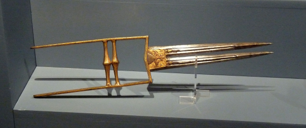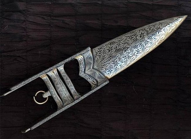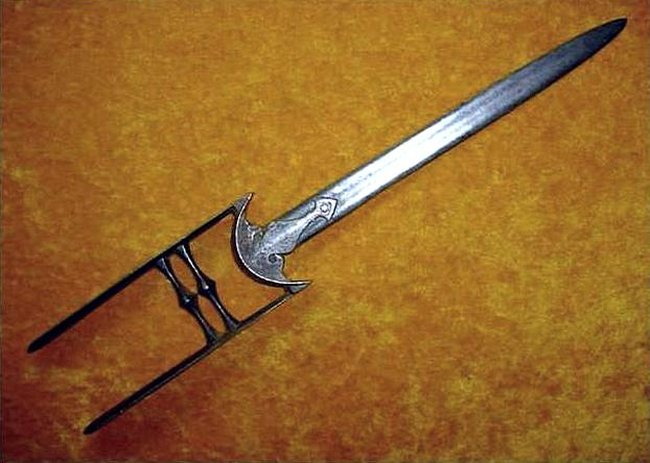 К примеру, кинжал кутар (или катар, как его еще называют), он же джамадхар, нигде за пределами Индии не встречается. Это кинжал тычкового типа: классический кутар имеет прямой, треугольный, обоюдоострый клинок, конструктивно составляющий единое целое с эфесом рамочной формы. Рукоять представляет собой две поперечные планки, позволяющие жестко удерживать оружие в руке. Боковые пластины рамки дают руке дополнительную защиту, позволяющую парировать рубящие удары, наносимые противником.