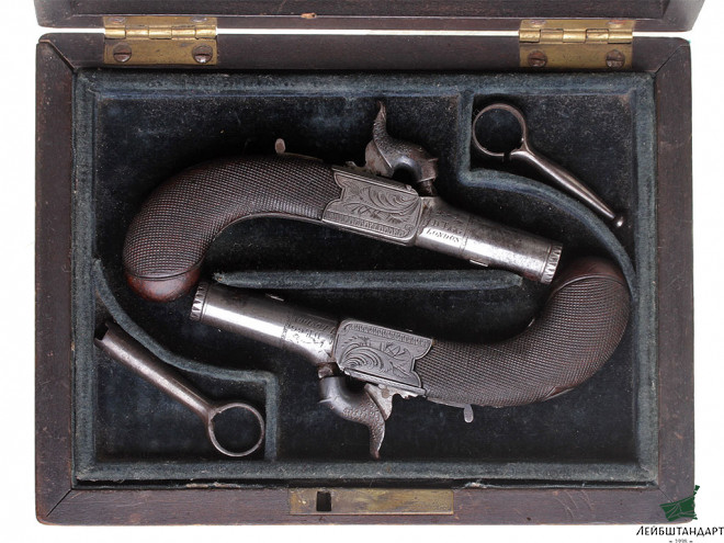 Пара классических английских жилетных одноствольных пистолетов с капсюльными замками