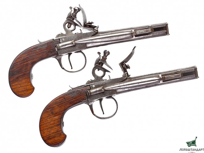 Пара дорожных (жилетных) пистолетов произвольного типа с кремневыми замками