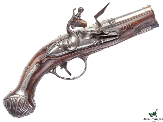 Пистолет карманный (жилетный) с кремневым замком, изготовленный в первой половине XVIII века.