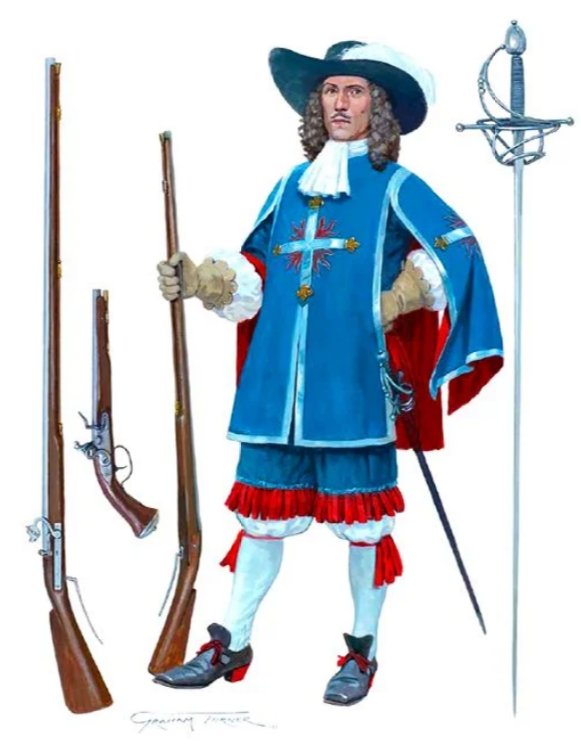 А умел ли он фехтовать? Да, пожалуй... Примерно, как и любой пикинёр, аркебузир или фузилёр — то есть на том же «любительском» уровне. Тот, кто знаком с тактикой европейской пехоты XVI — XVII веков, легко объяснит и предназначение мушкетёров на поле боя, и их тактическое применение. Оно менялось лишь сообразно развитию огнестрельного оружия и наращиванию количества артиллерии. В XVI веке мушкетёр был вооружен массивным фитильным мушкетом, стрельба из которого немыслима без сошек-подпорок: в то время верхняя часть туловища любого уважающего себя пехотинца или кавалериста закрыта доспехом — кирасой (у тех, кто победнее, хотя бы нагрудником).