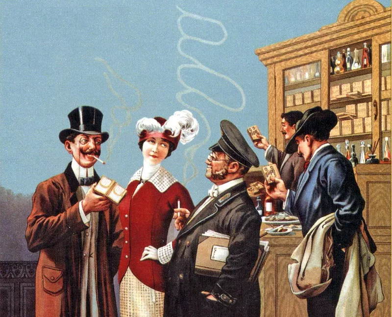 Именно табакерка является предком портсигара, предназначенного уже не для нюхательного табака, а для папирос. Кто первым придумал набивать курительный табак в бумажные трубочки, доподлинно неизвестно. Тем не менее, в России первые папиросы отечественного производства появляются в конце 1820-х годов, а самокрутки известны еще раньше. Разумеется, в армии это новшество быстро приобретает популярность. Не будем забывать, что в дореволюционной России мужская часть населения курила почти поголовно, а в начале 20 века и женщины старались не отставать; в советское время курение также было очень распространено, и о его вреде начал предупреждать только Минздрав (да и то в сильно послевоенные годы). До появления Минздрава эта мысль не особенно приходила кому-то в голову.