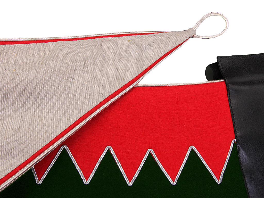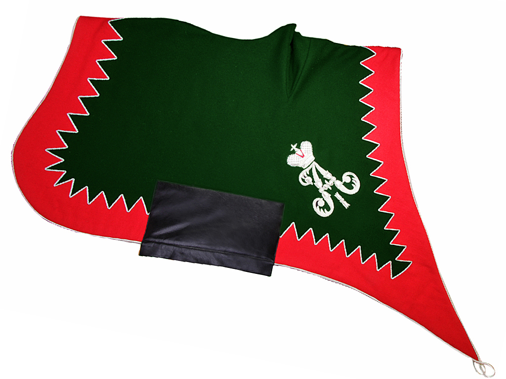 Вальтрап (чепрак) для лошади офицера - Ольвиопольский гусарского полка периода правления Александра I. Данному полку соответствовал присвоенный им чепрак зеленого цвета с серебряным шитьем, сам вальтрап был обшит по краю широким зигзагообразным серебряным галуном. Учитывая общую яркость гусарской униформы, легко представить, что убор боевого коня вполне соответствовал убранству владельца, и офицеры гусарских полков не жалели на него средств. Зачастую использовались галуны и канитель из натурального серебра, подобные элементы стоили немалых денег.