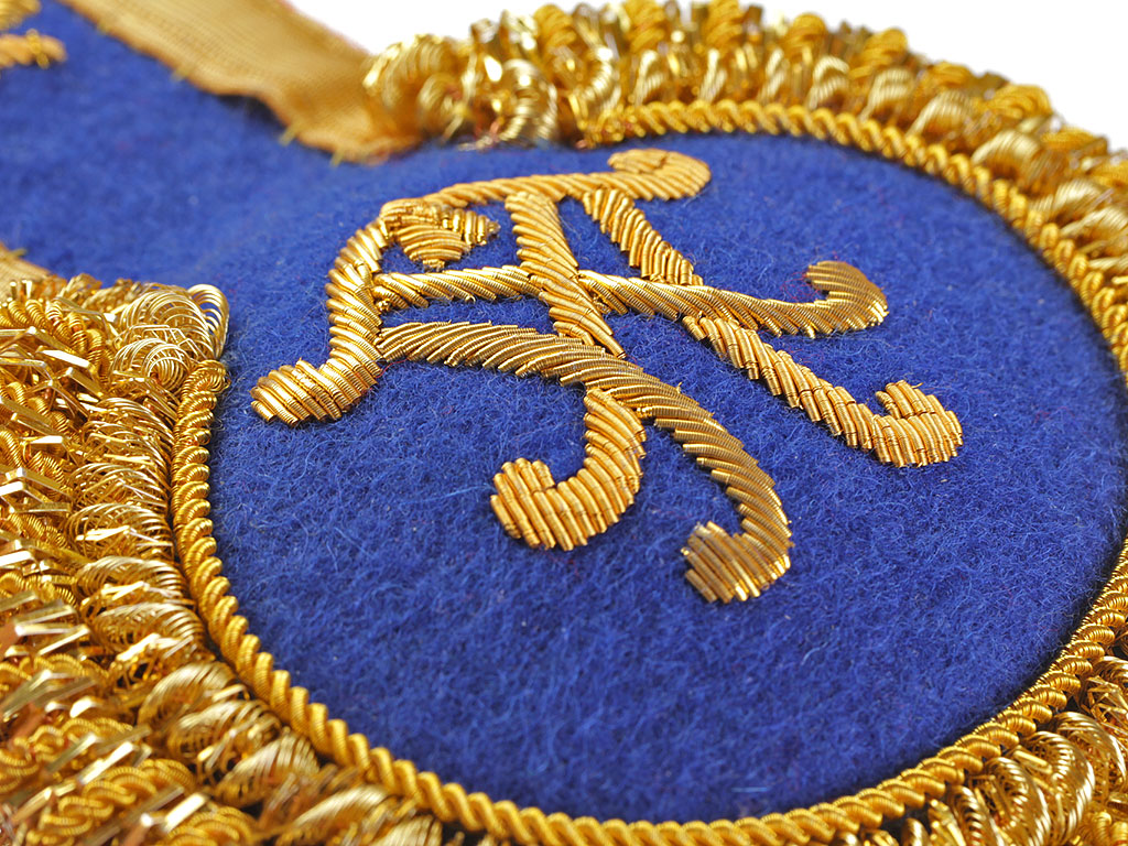 Помимо богатой отделки галуном, эполеты несут на себе отличительную символику Президентского полка, присвоенную только этой части. Во-первых, это металлический вензель в виде переплетенных прописных букв "П" рукописного начертания золотистого цвета. Во-вторых - металлическая эмблема в виде пылающей гренады, наложенной на скрещенные посольские топорики, вся золотистого цвета.
