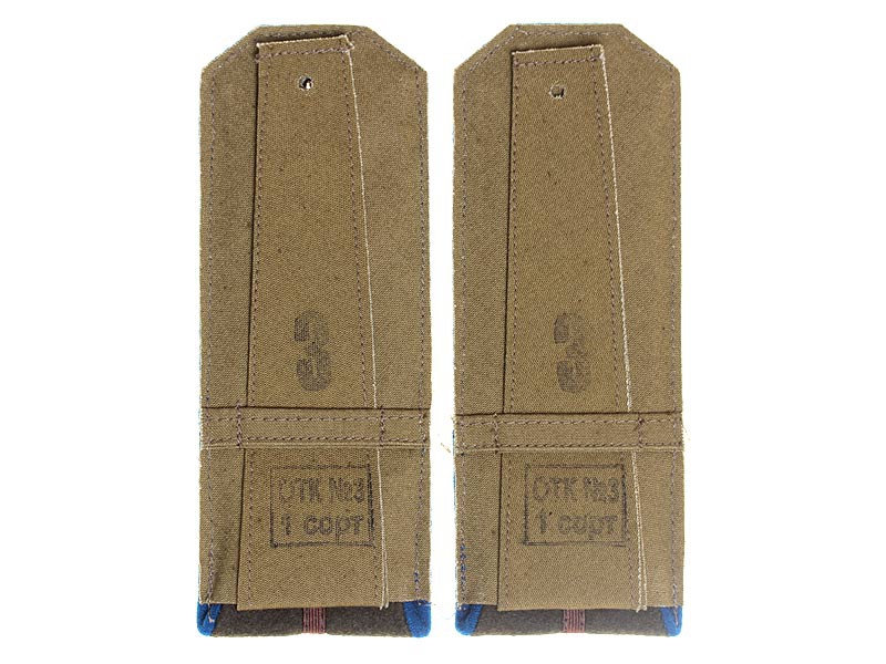 Полевые погоны рядового состава и младшего комначсостава пятиугольные из сукна цвета хаки с цветной окантовкой, без эмблем родов войск и служб (!).