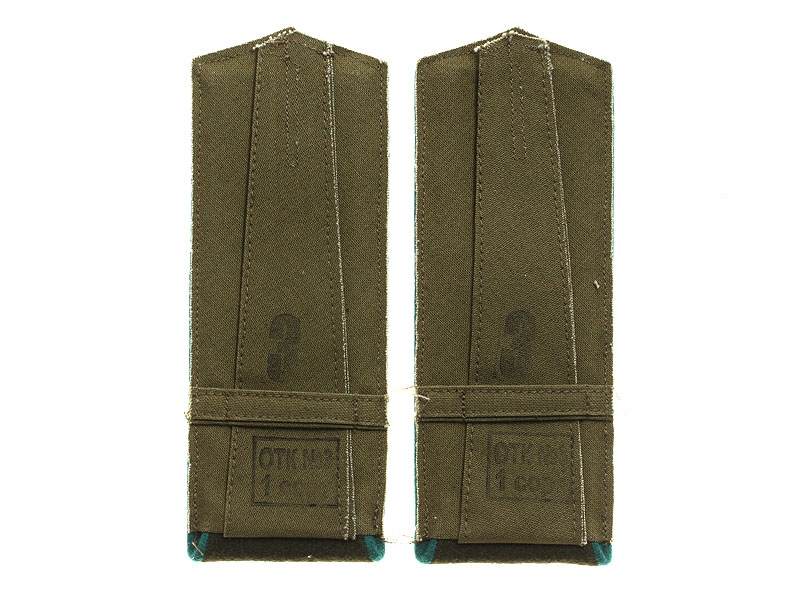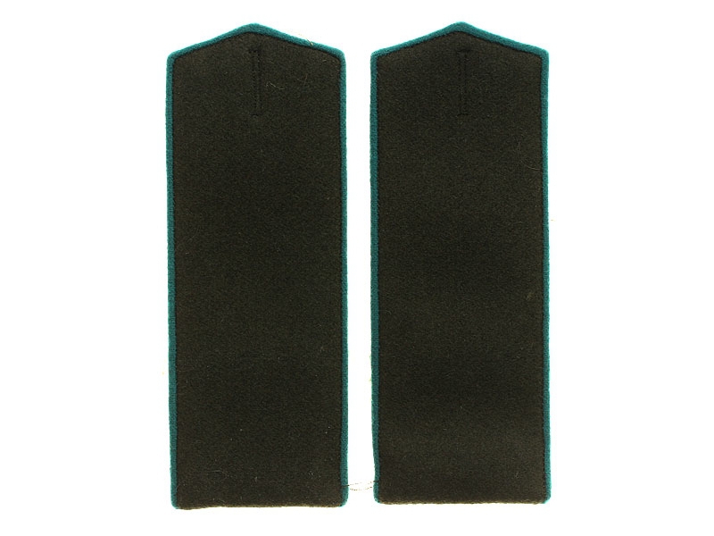 Повседневные погоны рядового состава и младшего комначсостава пятиугольные из сукна цвета по родам войск, с цветной окантовкой, с эмблемами родов войск и служб (латунные желтого металла).