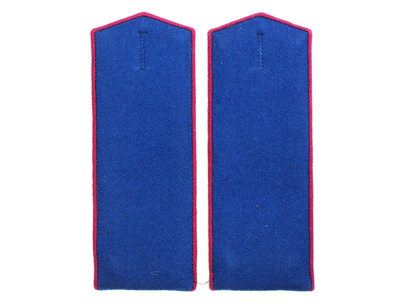 Повседневные погоны рядового состава и младшего комначсостава пятиугольные из сукна цвета по родам войск, с цветной окантовкой, с эмблемами родов войск и служб (латунные желтого металла).