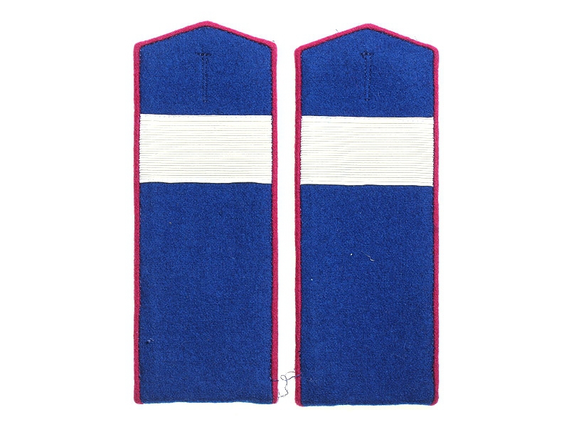 Повседневные погоны рядового состава и младшего комначсостава пятиугольные из сукна цвета по родам войск, с цветной окантовкой, с эмблемами родов войск и служб (латунные желтого металла).