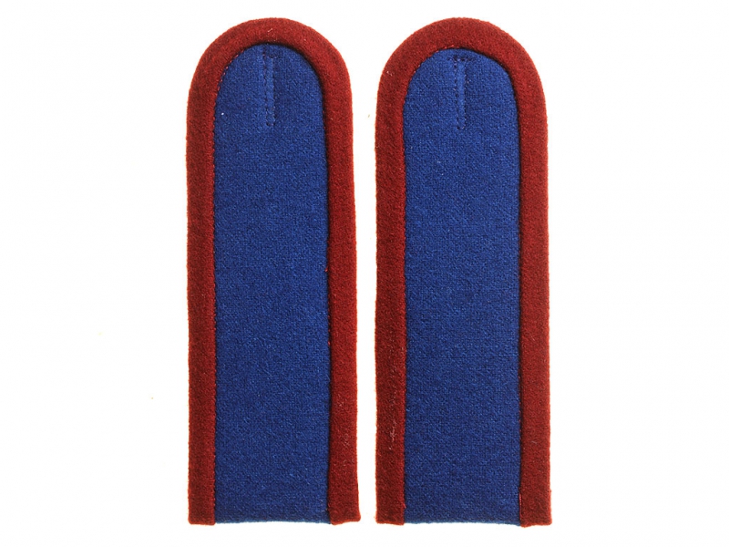 Повседневные погоны рядового состава и младшего комначсостава пятиугольные из сукна цвета по родам войск, с цветной окантовкой, с эмблемами родов войск и служб (латунные желтого металла).