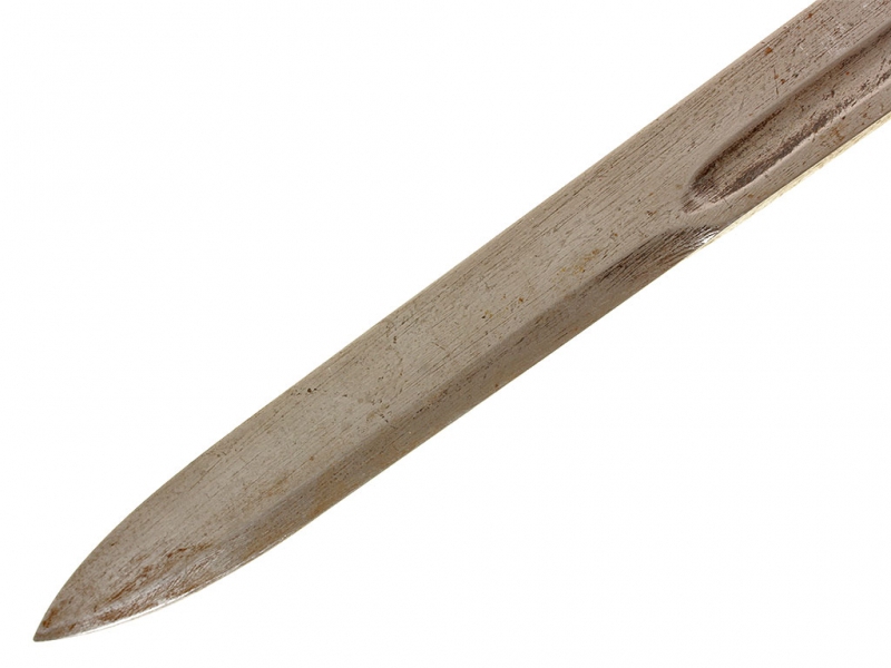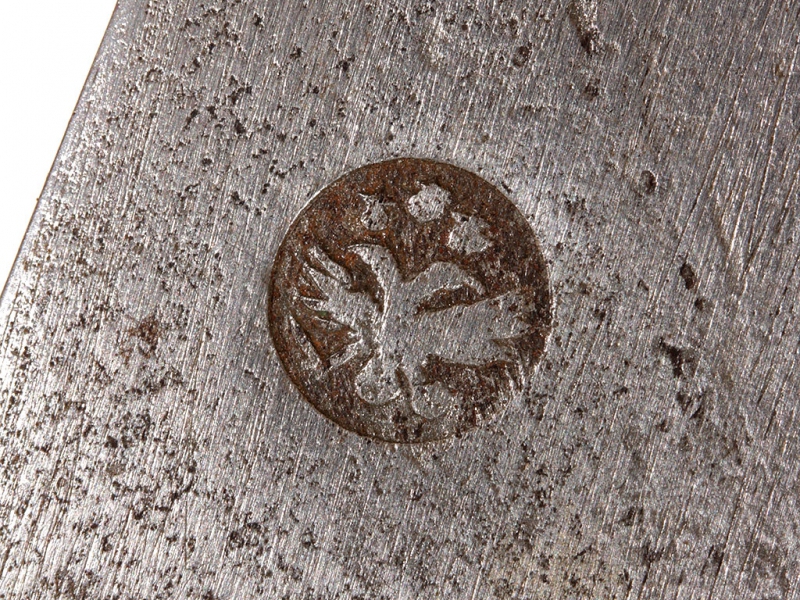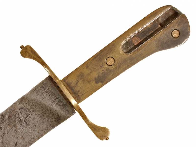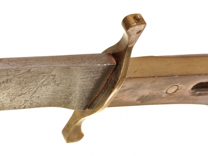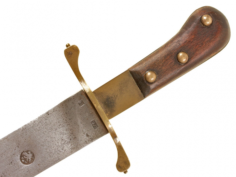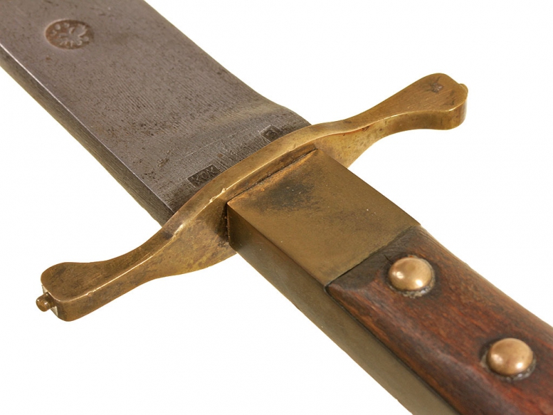 Штык-тесак (кортик) к егерскому штуцеру образца 1798 года. Клинок прямой, однолезвийный (боевой конец двулезвийный), с долом вдоль обуха. У основания клинка имеются клейма приемки - круглое клеймо с изображением двуглавого орла и прямоугольные "КСК" и "Е".
