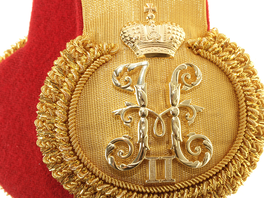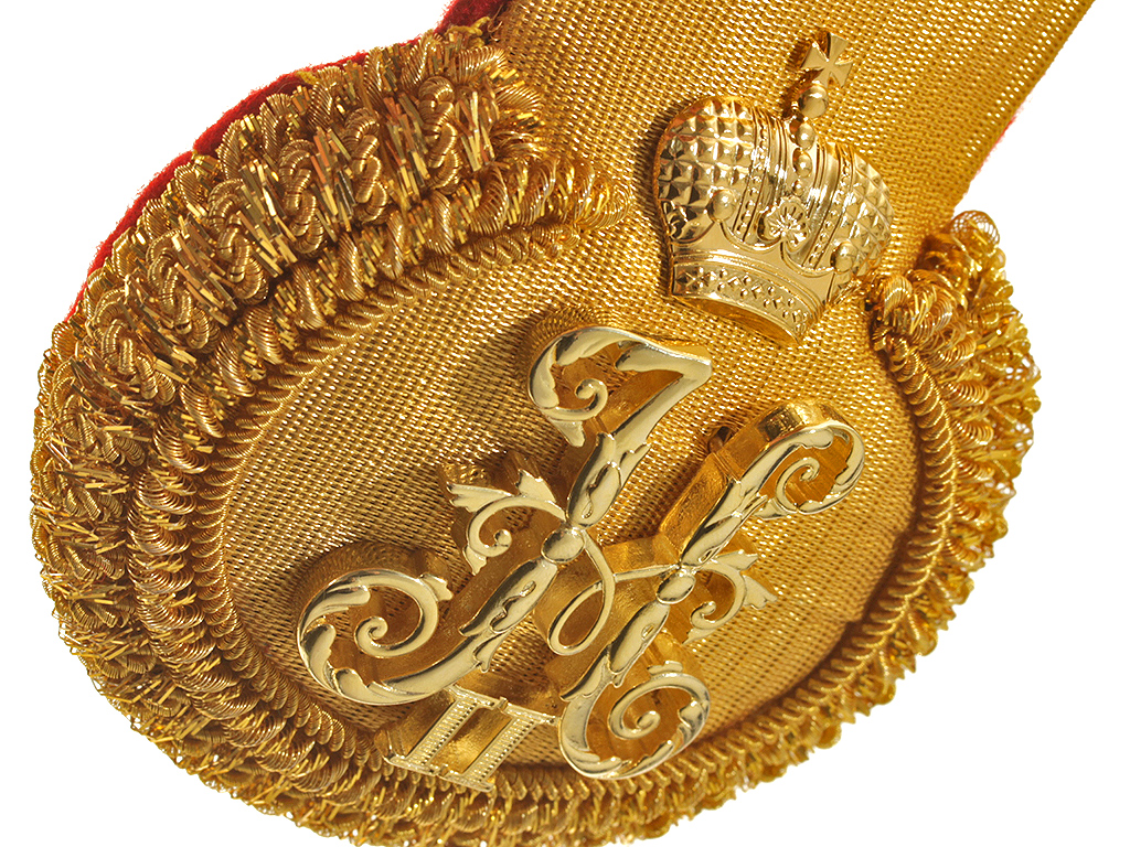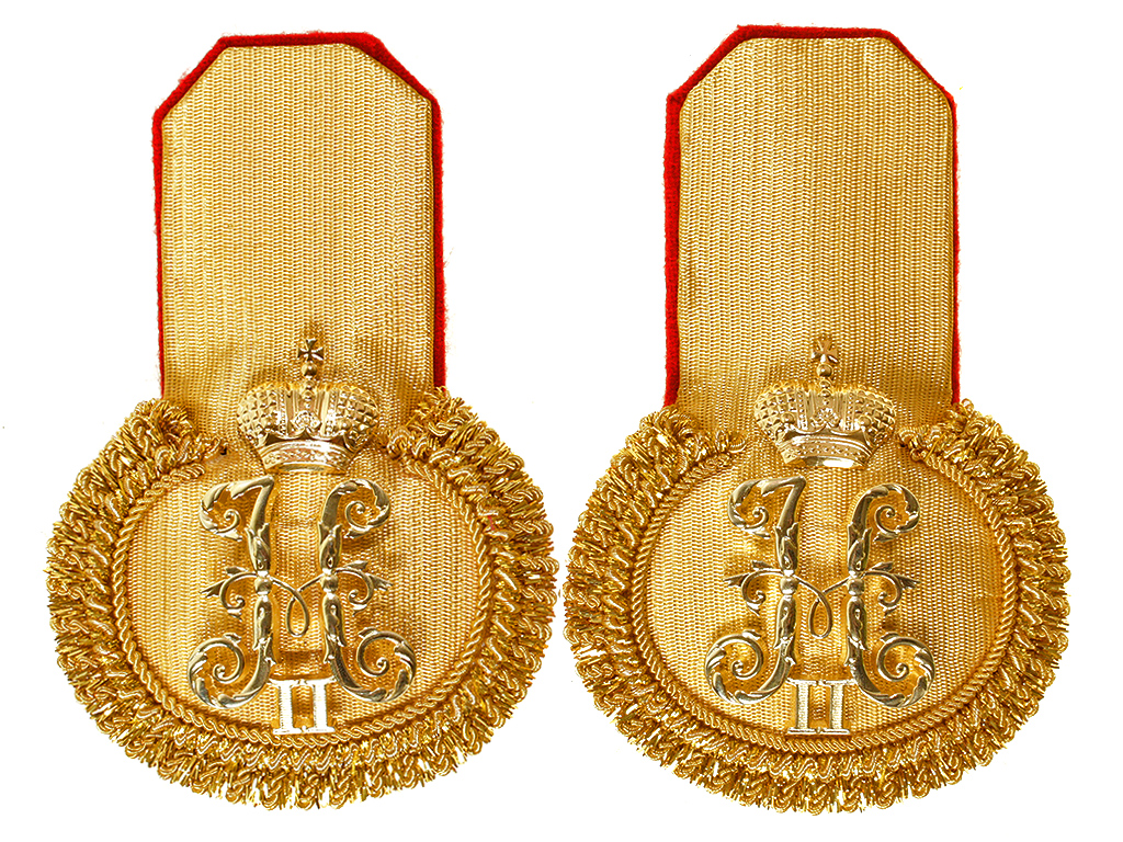 Гвардейские эполеты роты Его Величества с вензелем Николая Второго.
