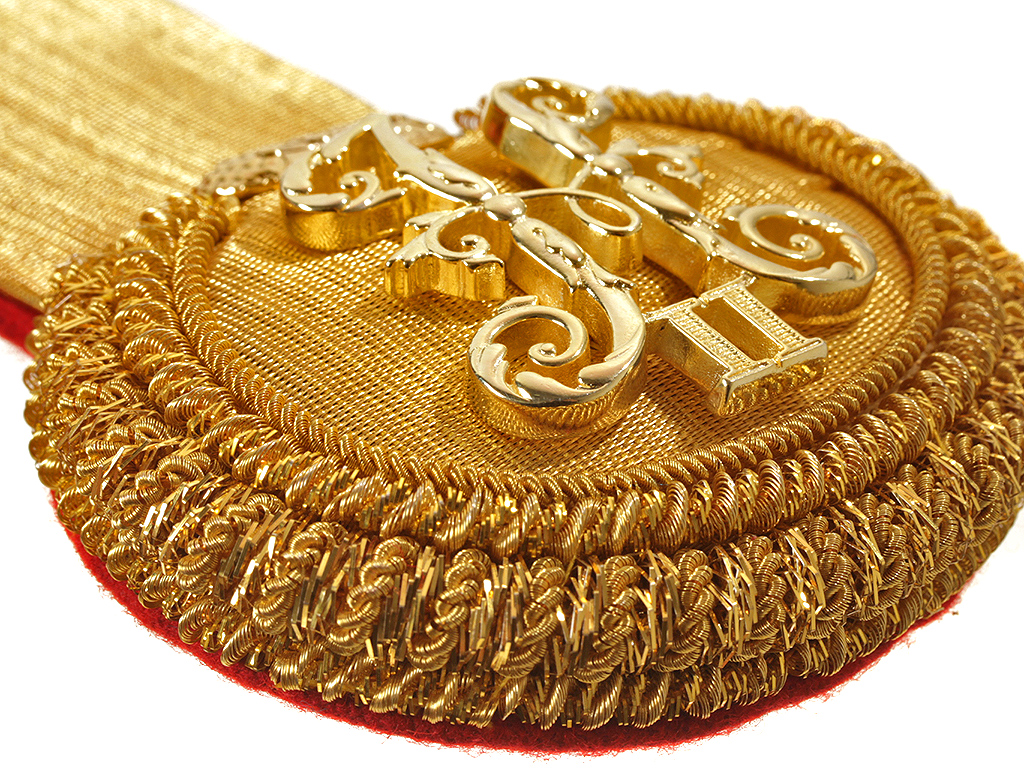 |Эполеты гвардейские, роты Его Величества с Вензелем Н2, Золотое тканое поле Красный подбой, Россия, копия