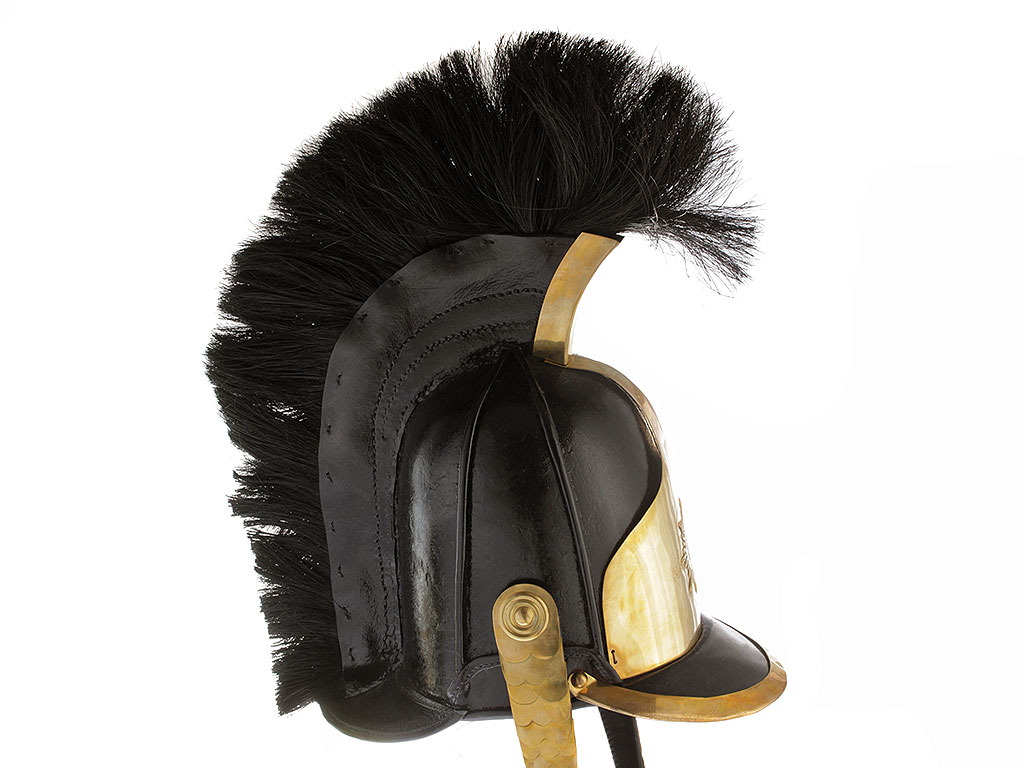 Изготовленные из плотной кожи, имевшие жесткий гребень, каски подобного типа несли не только эстетическую, но и практическую функцию, защищая голову кавалериста от сабельных ударов противника. Против огнестрельного оружия (даже той эпохи) они были бесполезны, но этого от них и не требовалось: кавалерии того времени часто приходилось иметь дело с противником, вооруженным и применявшем в первую очередь холодное оружие.