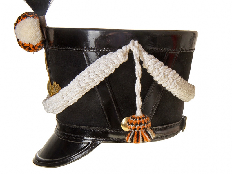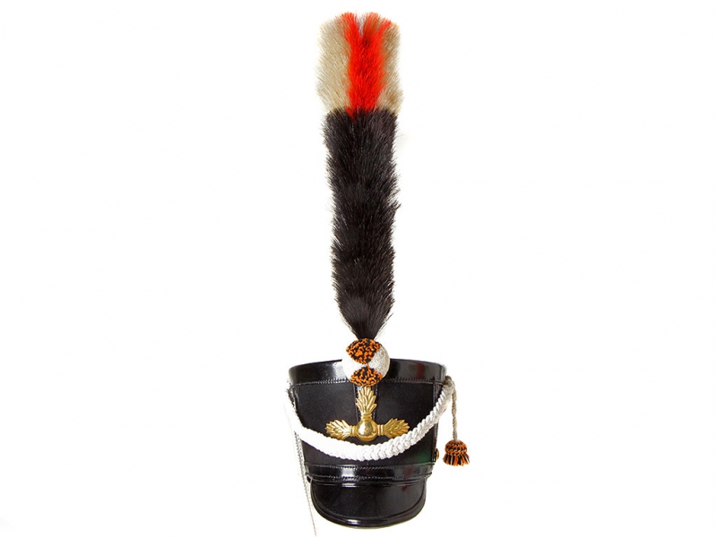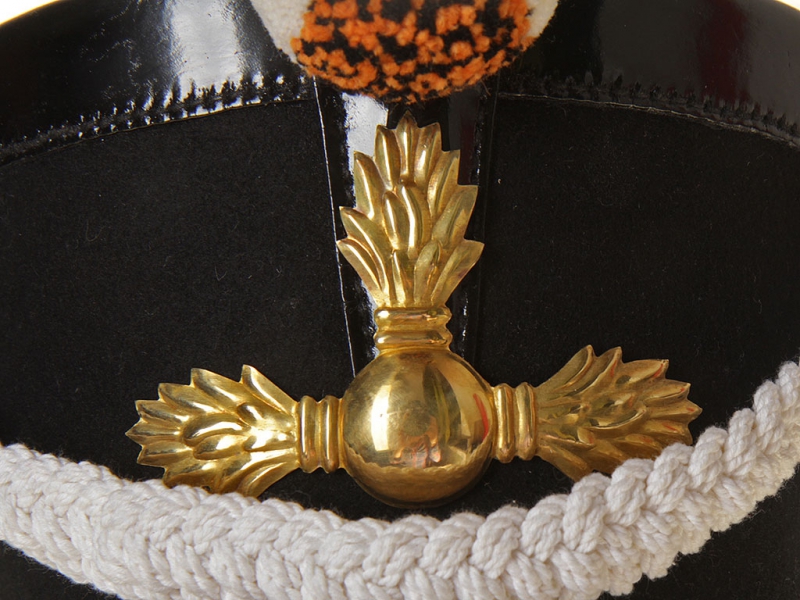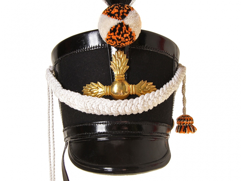 Кивер образца 1808 года с репейком унтер-офицера (образца 1811 года), этишкет, гренада "о трех огнях", султан черно-белый с красным просветом, унтер-офицерский.