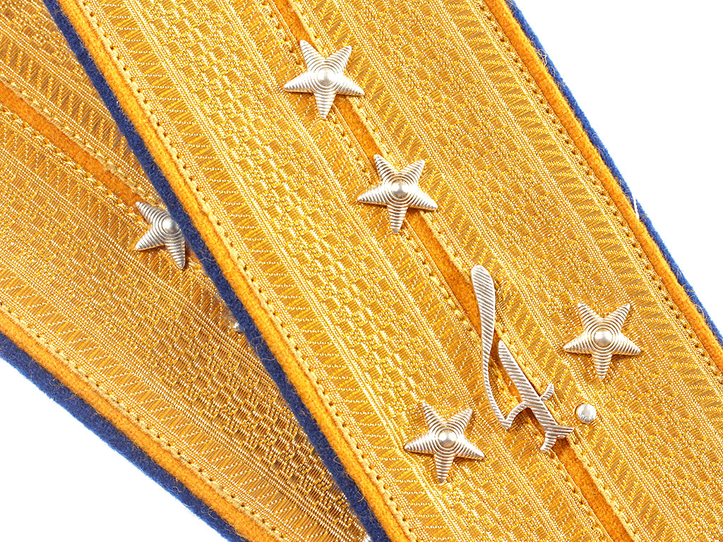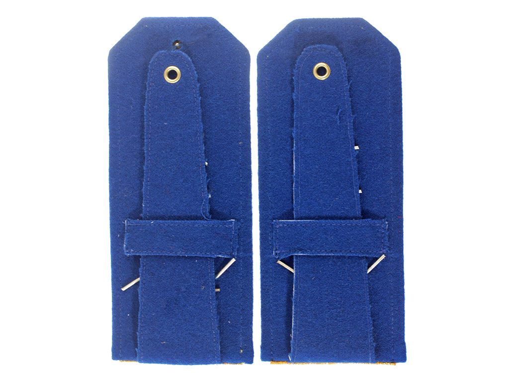Погоны штабс-ротмистра 4-го уланского Харьковского полка РИА. Желтое металлизированное поле, желтый просвет, синяя основа, двойной кант (синий и желтый). Россия, копия