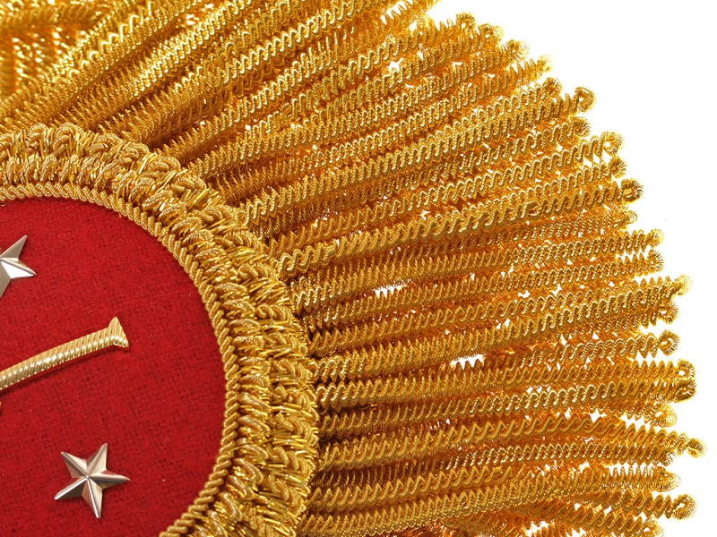 Эполеты сделаны очень качественно, практически не отличимы от оригинала, галун по корешку, шитье в месте крепления пуговицы и конечно же золотая плетеная основа-шейка, полностью повторяющая оригинал.