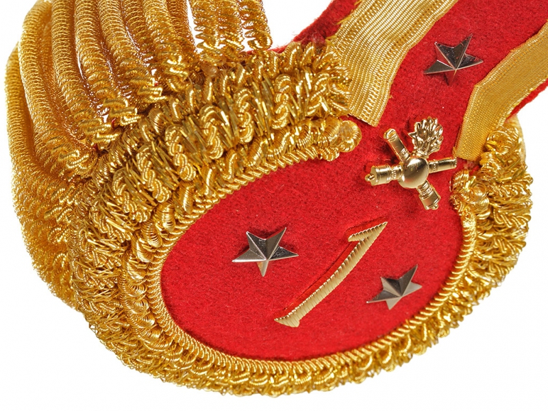 |Эполеты подполковника 1-ой гренадерской артиллерийской бригады, красное поле, золотой прибор, с бахромой. Артиллерия. Россия, копия
