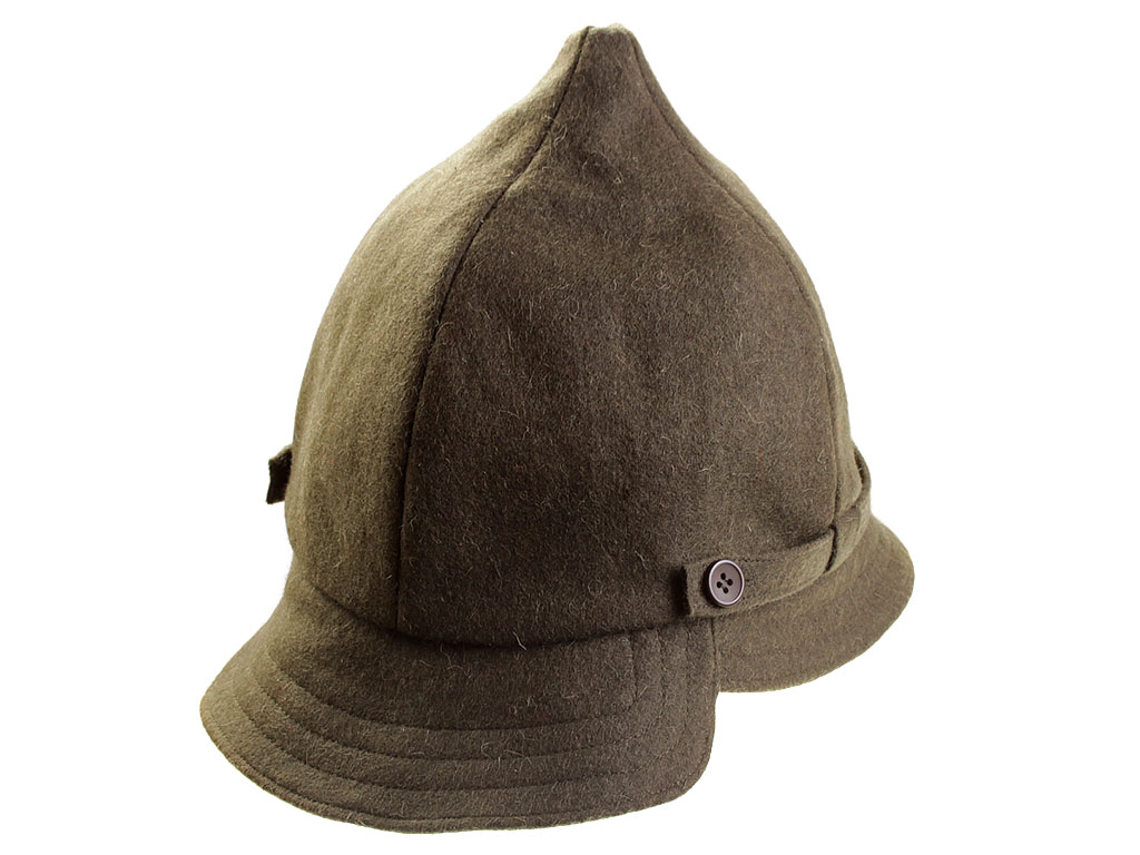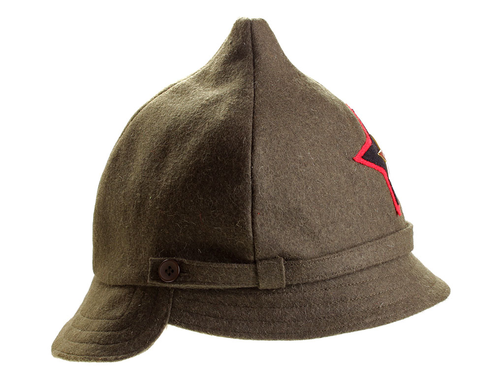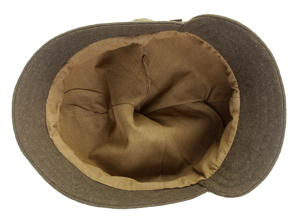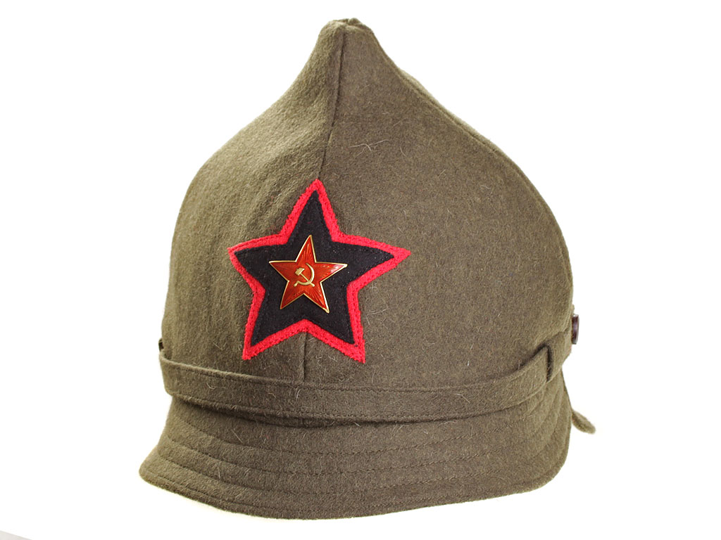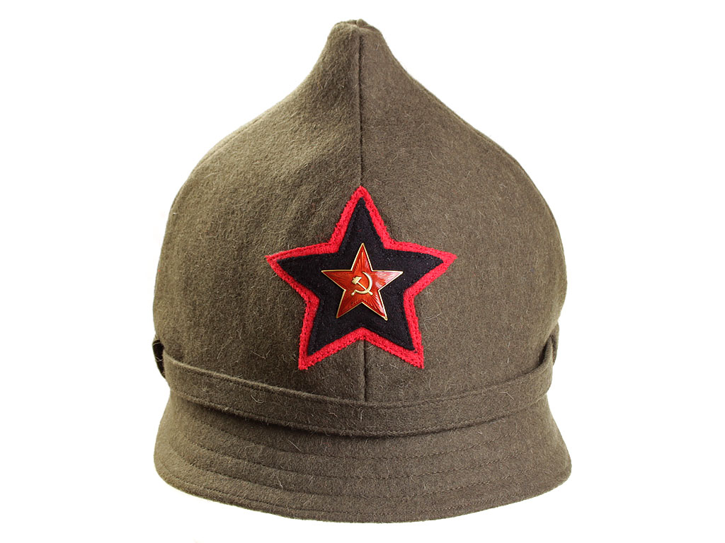 За образец при изготовлении представленного экземпляра была взята неуставная (произвольного типа) оригинальная командирская буденовка, пошитая владельцем на заказ из сукна по образцу летней буденовки, официально утвержденной 31 января 1922 года (и делавшейся из хлопчатобумажной ткани). Шлем пошит из сукна защитного цвета и состоит из колпака на подкладке, переднего и заднего козырька, а также подбородного суконного ремешка, пристегивающегося на две пуговицы. Колпак состоит из четырех сшитых сторонами сферических треугольников, сходящихся в вершине. Спереди шлема нашита правильная пятиконечная звезда из приборного сукна присвоенного роду войск цвета: в представленном случае звезда из байковой ткани черного цвета с красным кантом (такая окантовка полагалась до февраля 1922 года; с февраля 1922 звезда черного цвета была присвоена броневым силам вместо красной, артиллерии вместо оранжевой, у инженерных войск она изначально была черной). Металлическая звездочка - раннего типа ("острая" звезда), принятого в РККА в 1924 году. Подкладка под шлем - из хлопчатобумажной ткани, без ватной подложки. Следует отметить, что чаще всего в то время буденовка носилась без металлической звезды.