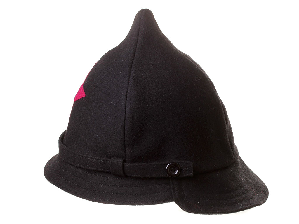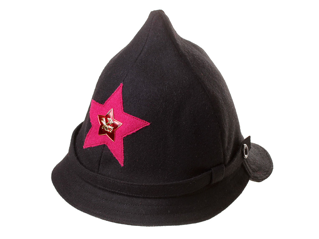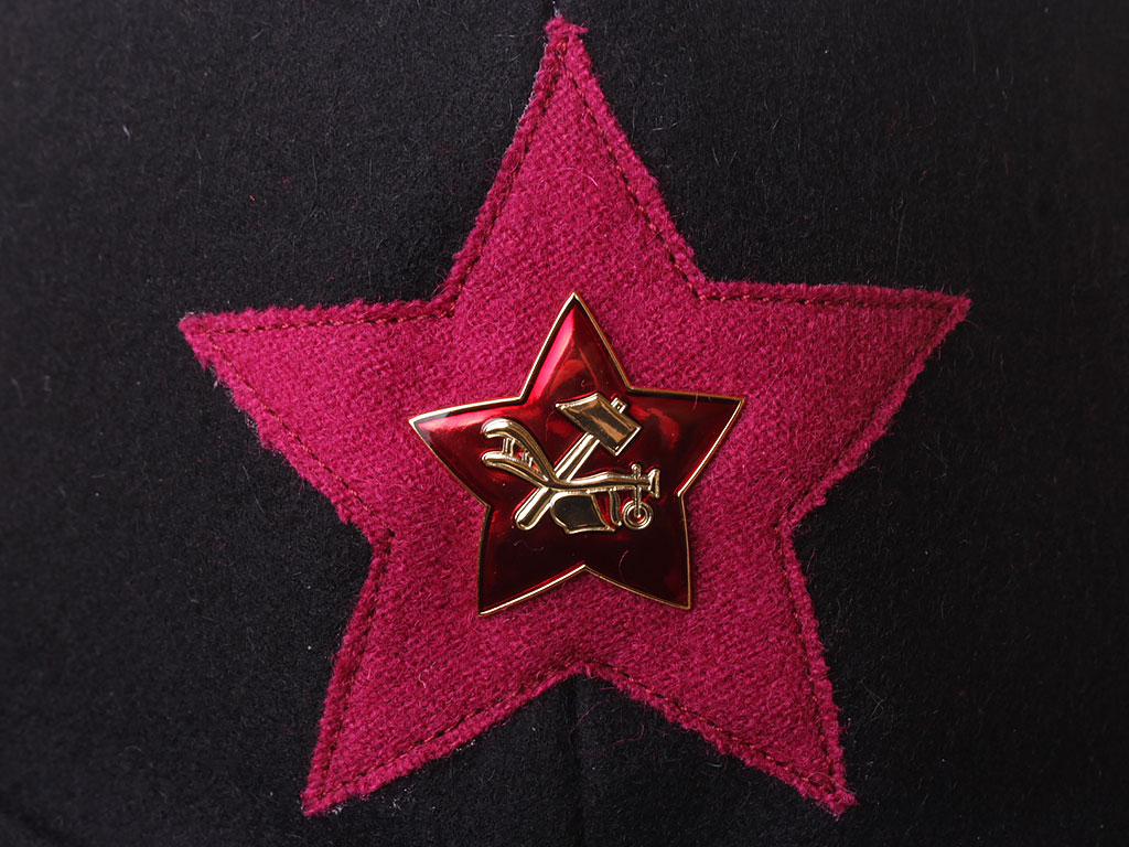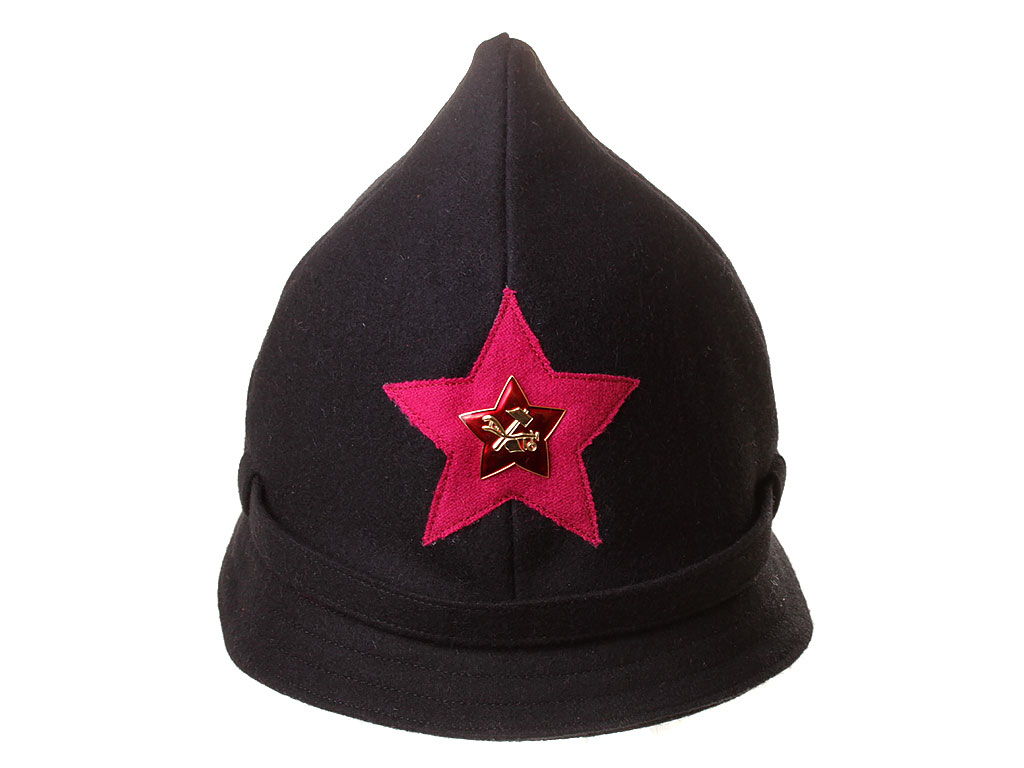 За образец при изготовлении представленного экземпляра была взята неуставная (произвольного типа) оригинальная ранняя командирская буденовка чекиста-транспортника (ТО ГПУ), пошитая владельцем на заказ из сукна по образцу летней буденовки, официально утвержденной в РККА 31 января 1922 года (и делавшейся из хлопчатобумажной ткани). В ГПУ буденовка принята для ношения 27 июня 1922 года, а ТО черную буденовку с малиновой звездой получили только в марте 1923. Шлем пошит из сукна черного цвета и состоит из колпака на подкладке, переднего и заднего козырька, а также подбородного суконного ремешка, пристегивающегося на две пуговицы. Колпак состоит из четырех сшитых сторонами сферических треугольников, сходящихся в вершине. Спереди шлема нашита правильная пятиконечная звезда из приборного сукна малинового цвета. Подкладка под шлем - из хлопчатобумажной ткани, без ватной подложки. Следует отметить, что в то время буденовка чаще всего носилась без металлической звезды.