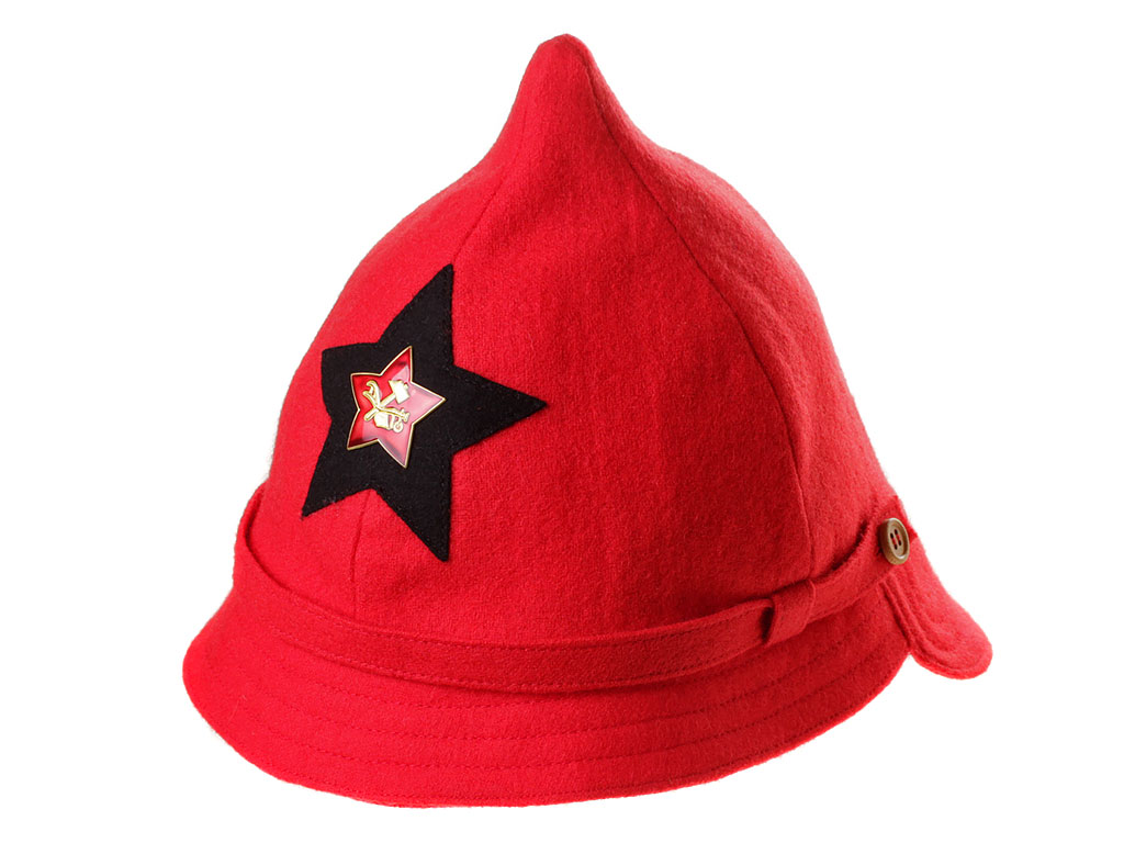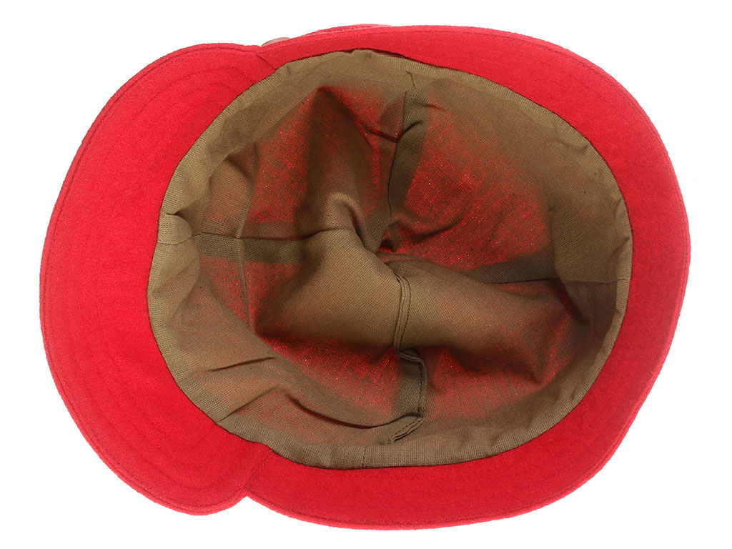 За образец при изготовлении представленного экземпляра была взята неуставная (произвольного типа) оригинальная ранняя командирская буденовка службы военных сообщений РККА, пошитая владельцем на заказ из сукна по образцу летней буденовки, официально утвержденной для ВОСО РККА 18 сентября 1922 года (и делавшейся из хлопчатобумажной ткани). Шлем пошит из сукна красного цвета и состоит из колпака на подкладке, переднего и заднего козырька, а также подбородного суконного ремешка, пристегивающегося на две пуговицы. Колпак состоит из четырех сшитых сторонами сферических треугольников, сходящихся в вершине. Спереди шлема нашита правильная пятиконечная звезда из приборного сукна черного цвета. Подкладка под шлем - из хлопчатобумажной ткани, без ватной подложки. Следует отметить, что чаще всего буденовка того времени носилась без металлической звезды.