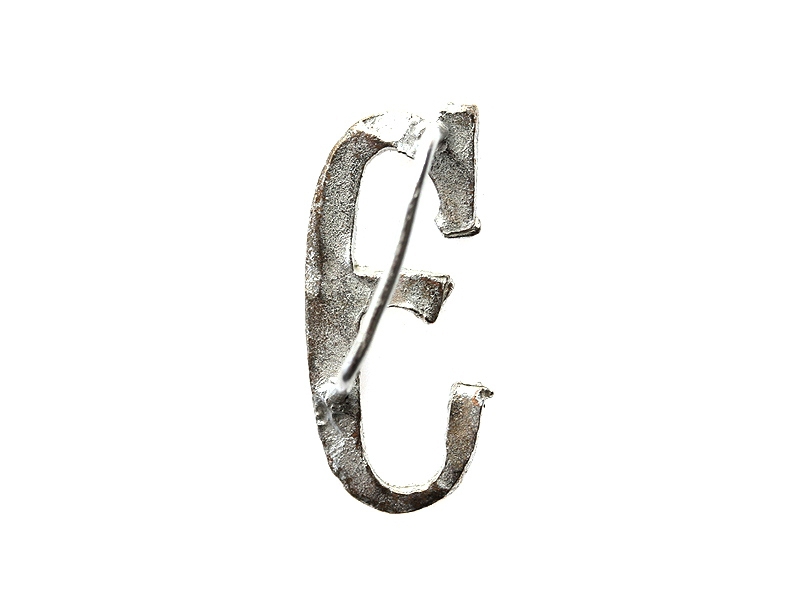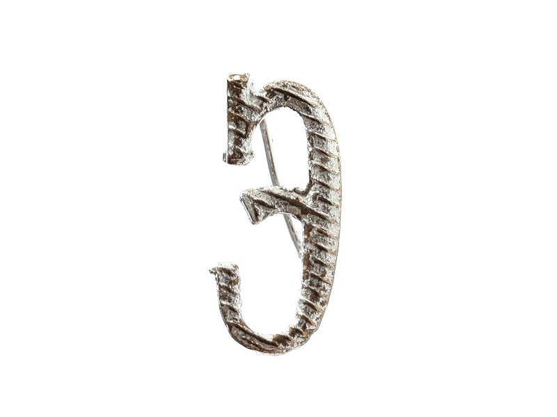 Буква "Э" погонная прописная посеребренная высотой 21 мм. Изготовлена из бронзы и покрыта серебром - не краской под серебро, а согласно старой технологии, принятой в дореволюционное время.