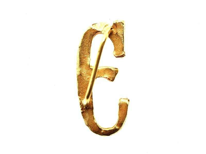 Буква "Э" погонная прописная позолоченная высотой 21 мм. Изготовлена из бронзы и покрыта позолотой - не краской под золото, а согласно старой технологии, принятой в дореволюционное время.