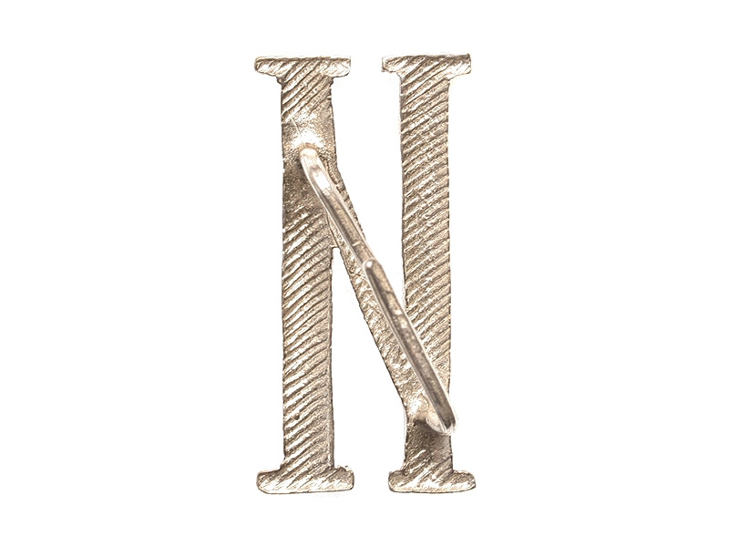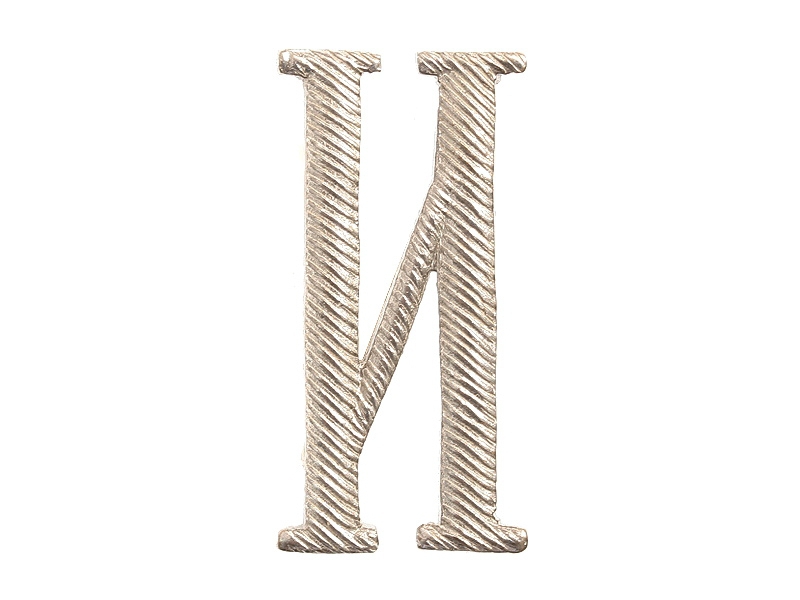 Буква "И" погонная заглавная посеребренная высотой 32 мм. Изготовлена из бронзы и покрыта серебром - не краской под серебро, а согласно старой технологии, принятой в дореволюционное время.