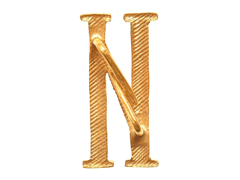 Буква "И" погонная заглавная позолоченная высотой 32 мм. Изготовлена из бронзы и покрыта высокопробной позолотой - не краской под позолоту, а согласно старой технологии, принятой в дореволюционное время.