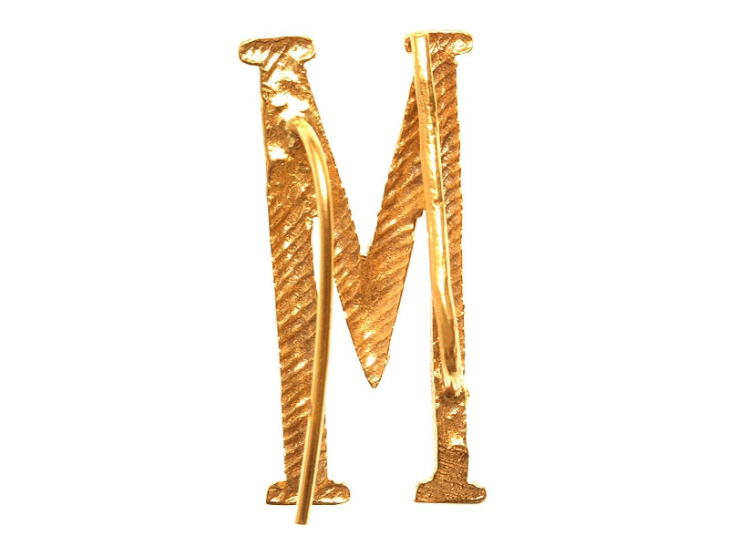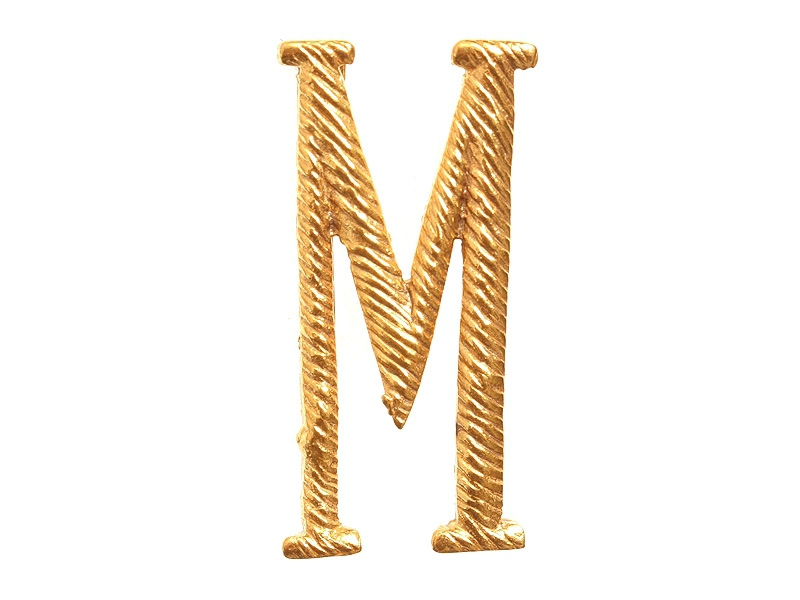 Буква "М" погонная заглавная позолоченная высотой 32 мм. Изготовлена из бронзы и покрыта высокопробной позолотой - не краской под позолоту, а согласно старой технологии, принятой в дореволюционное время.