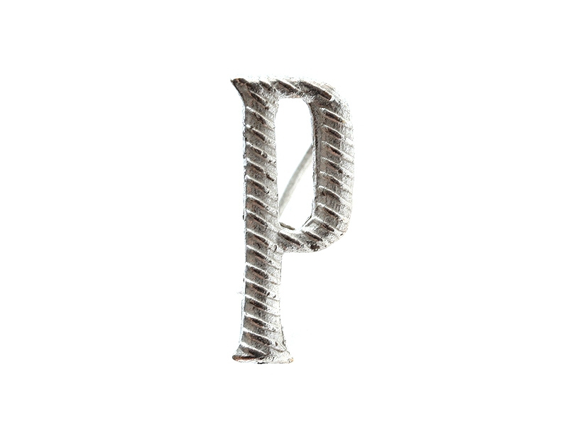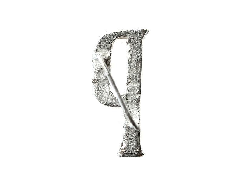 Буква "Р" погонная прописная посеребренная высотой 20 мм. Изготовлена из бронзы и покрыта серебром - не краской под серебро, а согласно старой технологии, принятой в дореволюционное время.
