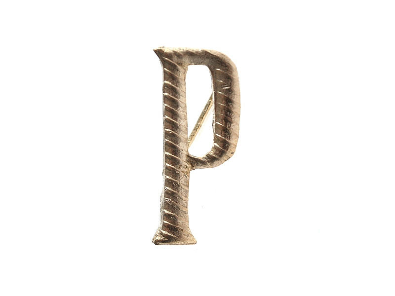 Буква "Р" погонная прописная высотой 20 мм. Изготовлена из бронзы.
