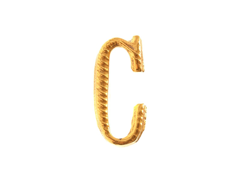 Буква "С" погонная прописная позолоченная высотой 21 мм. Изготовлена из бронзы и покрыта позолотой - не краской под золото, а согласно старой технологии, принятой в дореволюционное время.