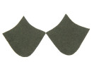 Встречаются треугольники вырезанные из зеленой ткани и пришитые к петлицам, вырезанные из баночной жести. Очень часто можно видеть на снимках шинели вообще без петлиц и каких либо знаков различия