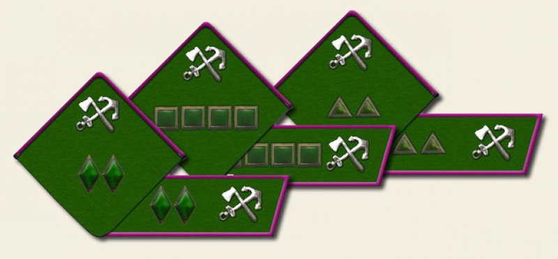 5. Красные эмалевые знаки различия званий заменяются на окрашенные в зеленый цвет.
