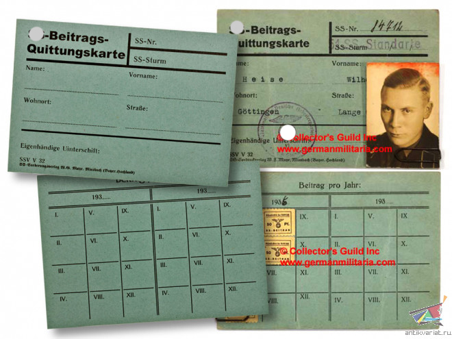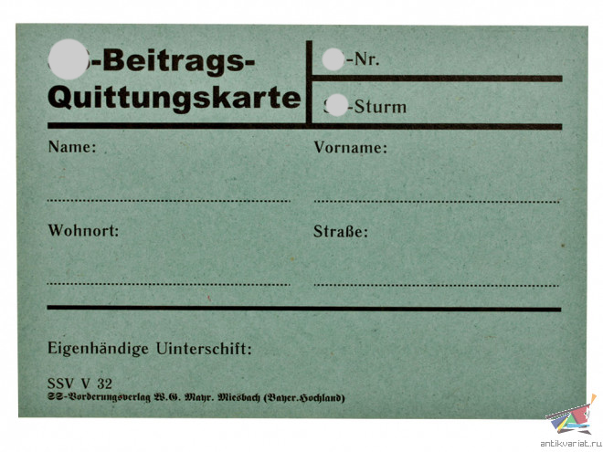 Карточка учета членских взносов Альгемайне СС, Германия, Копия...