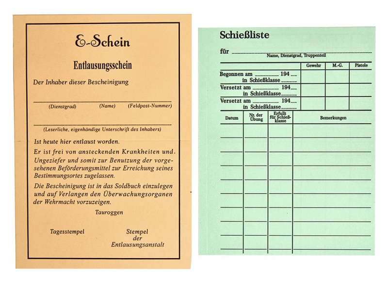 Комплект вкладышей в солдатскую книжку Soldbuch. Германия, копия