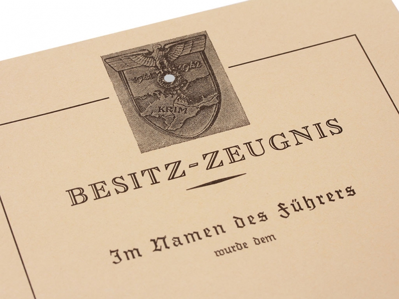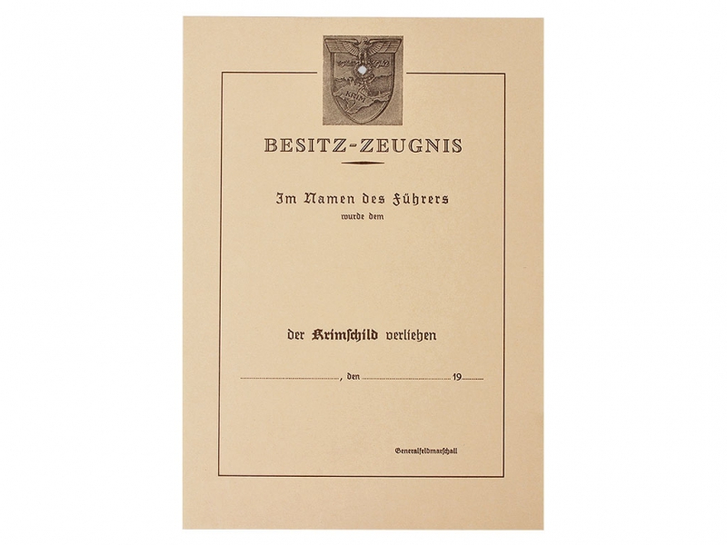 Наградной документ на нарукавный щит "Крым", Германия
