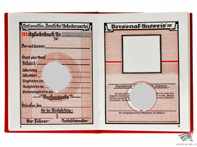 NSDAP Mitgliedsbuch (членская книжка) Nationalsozialistische Deutsche Arbeiterpartei (национал-социалистическая германская рабочая партия).