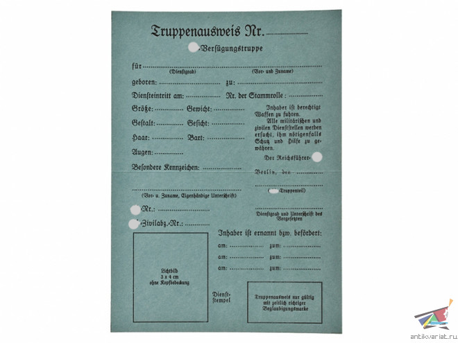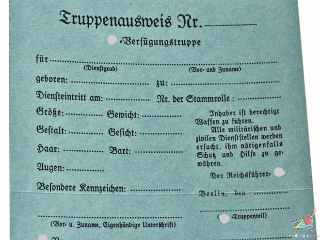 Данный документ выдавался военнослужащим СС вплоть до принятия другого документа - Soldbuch в 1939 году.
