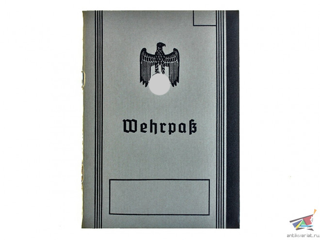 Копия Военный билет (Mehrpab) первого типа (орел с опущенными крыльями), серая обложка, готический шрифт, 52 страницы, Германия.