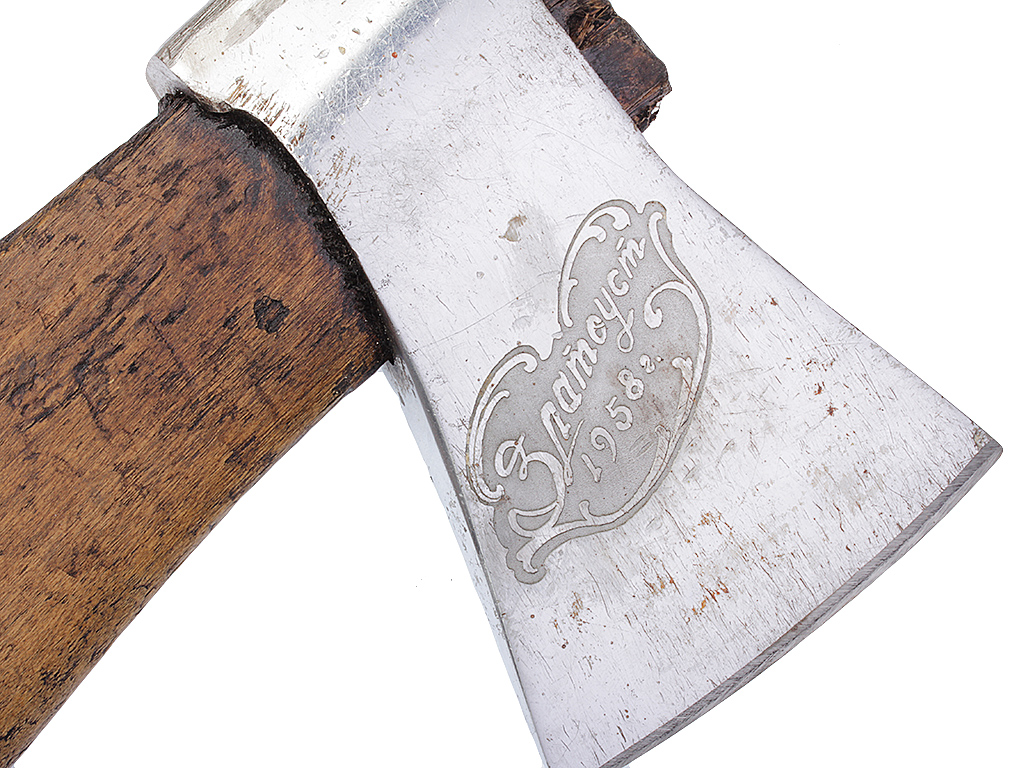 Топор с украшенным лезвием, изготовленный Златоустовскими мастерами в 1958 году.