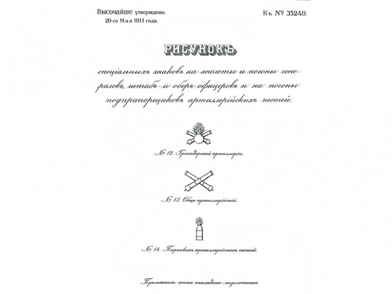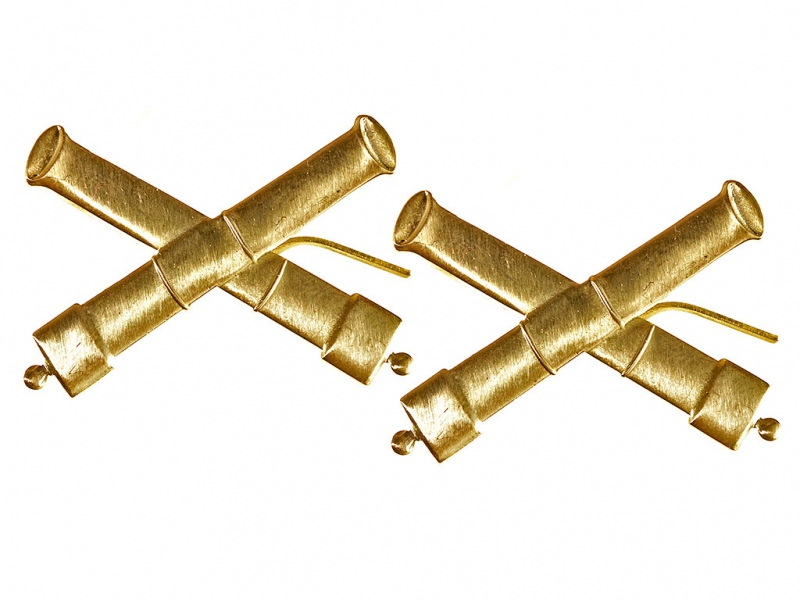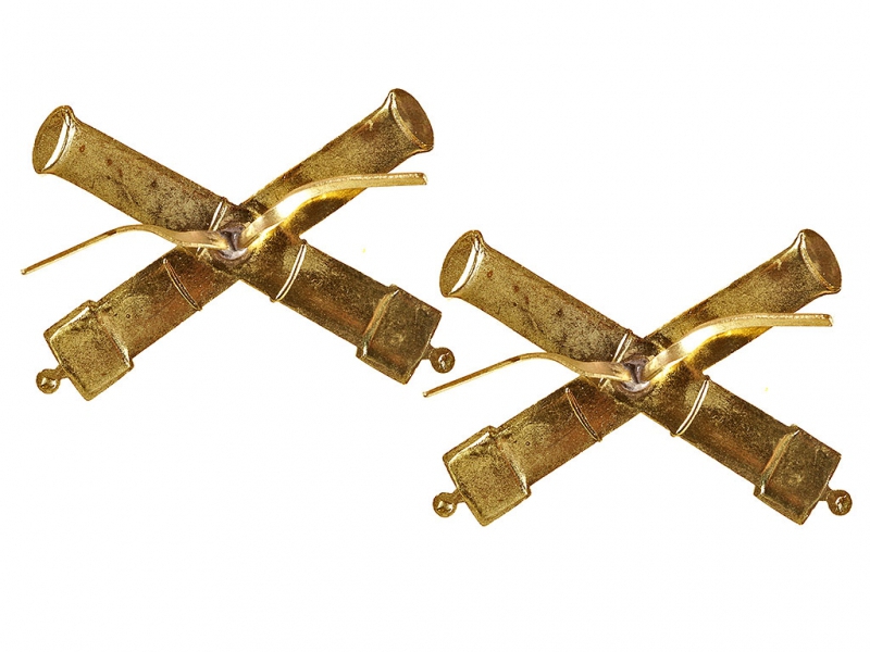 Большая тяжелая штампованная эмблема в виде перекрещенных пушек, носилась на погонах артиллерии Русской императорской армии и гвардии.