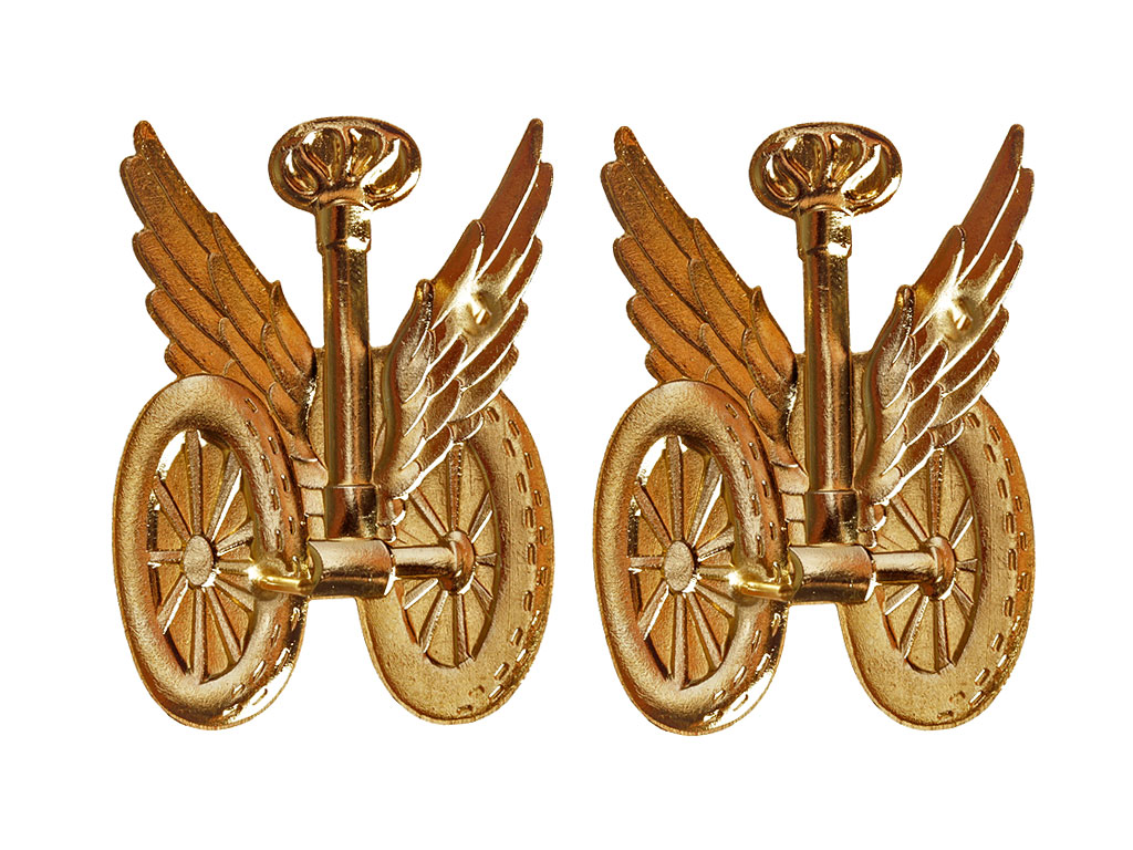 Пара специальных знаков на погоны офицеров автомобильных подразделений. Копия высокого качества, изготовлены штампом из латуни, позолочены.