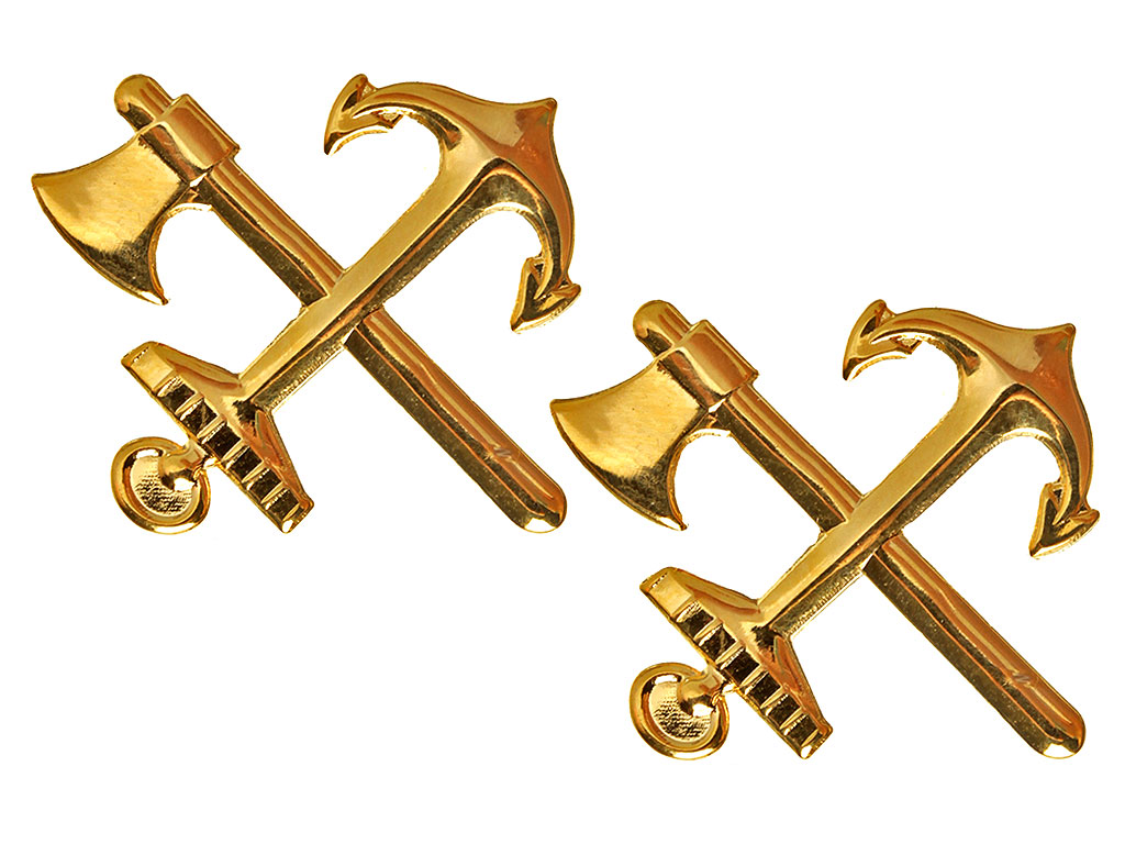 Пара специальных знаков на погоны офицеров железнодорожных войск. Копия высокого качества, изготовлены штампом из латуни, позолочены.