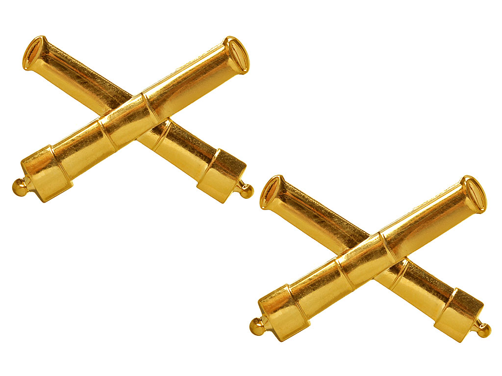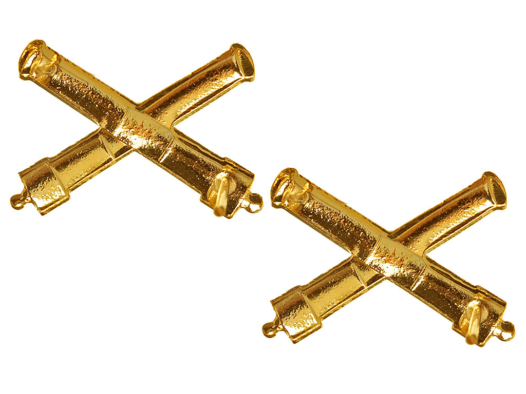 Пара специальных знаков на погоны офицеров артиллерийских частей (общеартиллерийские). Копия высокого качества, изготовлены штампом из латуни, позолочены.
