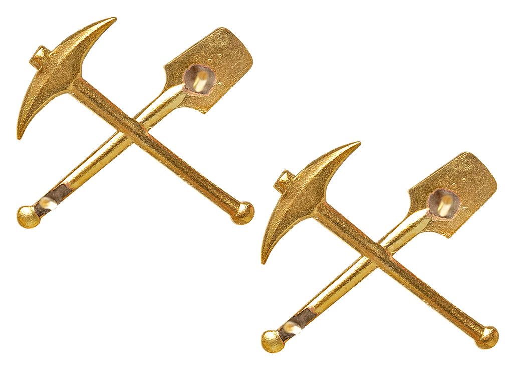 Пара специальных знаков на погоны офицеров полевых и крепостных саперных частей. Копия высокого качества, изготовлены штампом из латуни, позолочены.