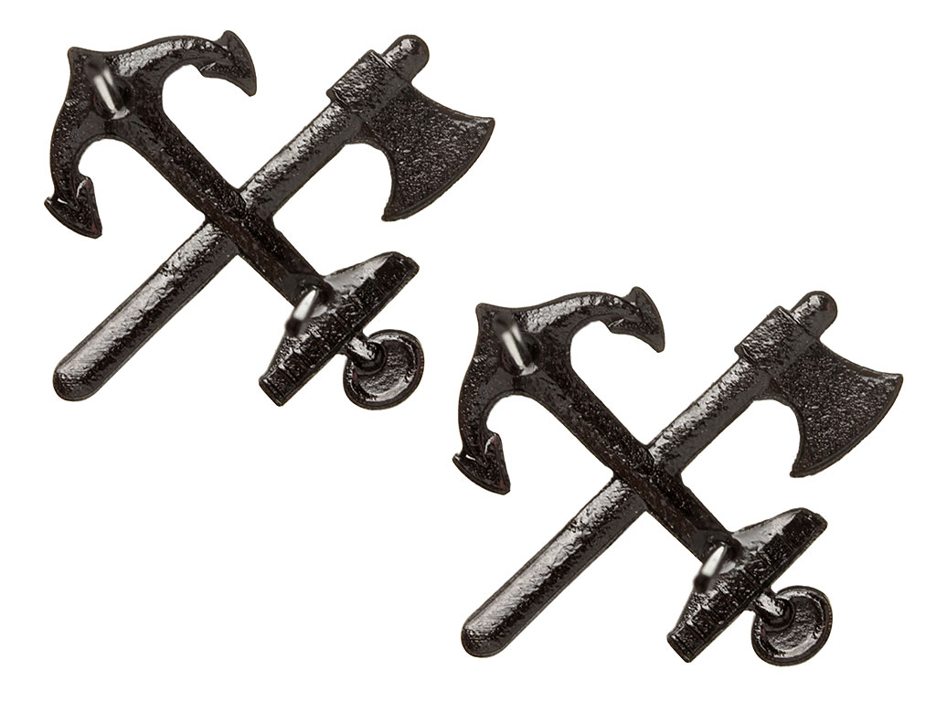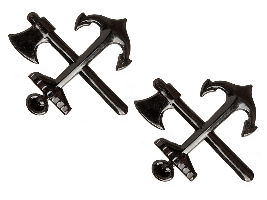 Пара специальных знаков на полевые погоны офицеров и унтер-офицеров железнодорожных войск. Копия высокого качества, изготовлены штампом из латуни, вороненые.