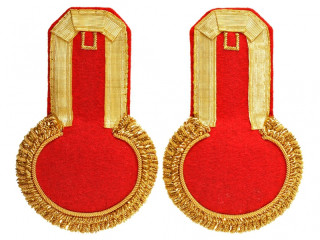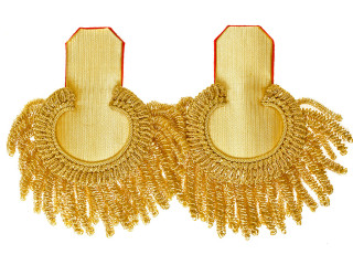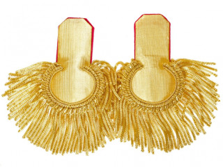 Эполеты гвардейского типа штаб-офицерские с бахромой. Золотое тканое поле, малиновый подбой. Россия, копия...
