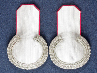 Штаб-офицерские эполеты саперных батальонов армейских частей, алое поле, серебряный прибор, алый кант. Россия,...